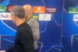 博主社媒晒视频,斯洛特与恩里克赛后笑着边走边聊